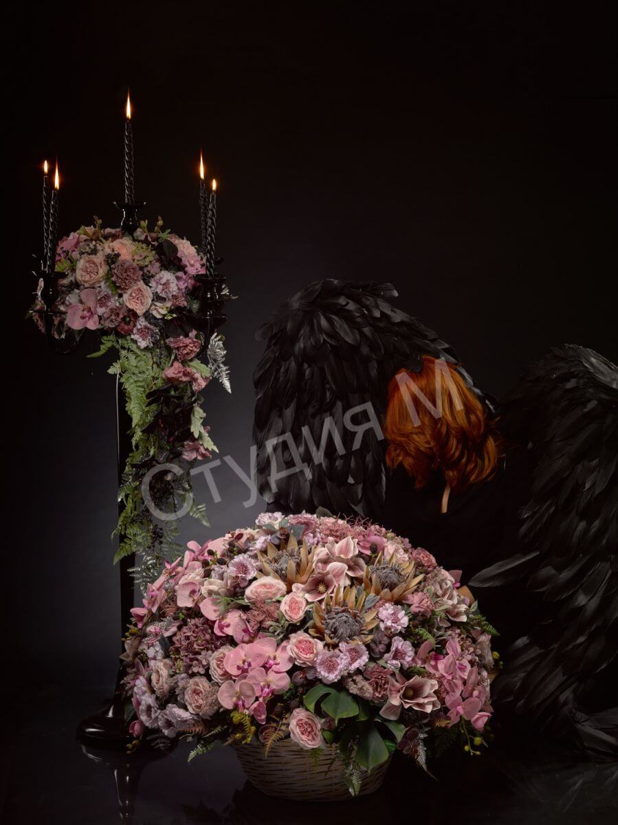 Ритуальная корзина из искусственных цветов №1