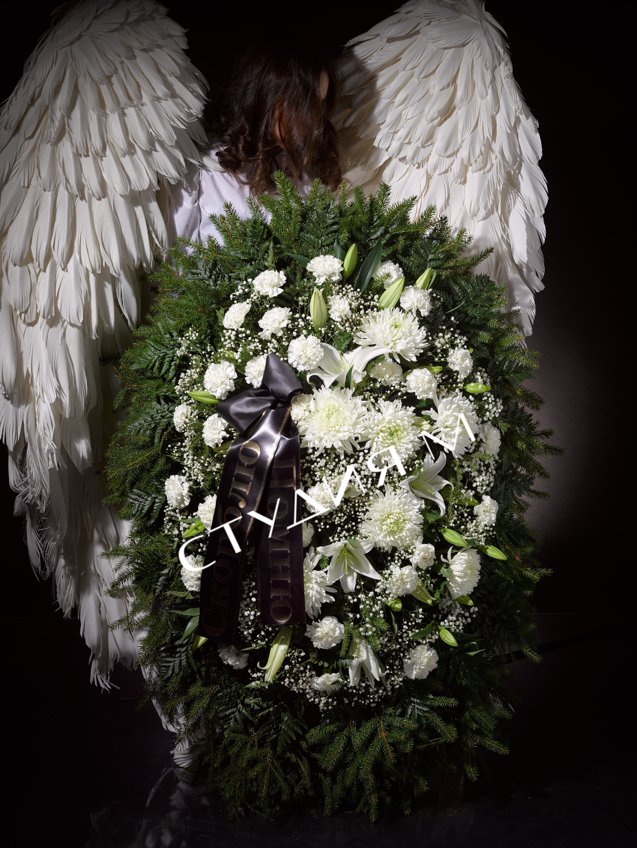 Венок ритуальный из живых цветов "эконом" №2