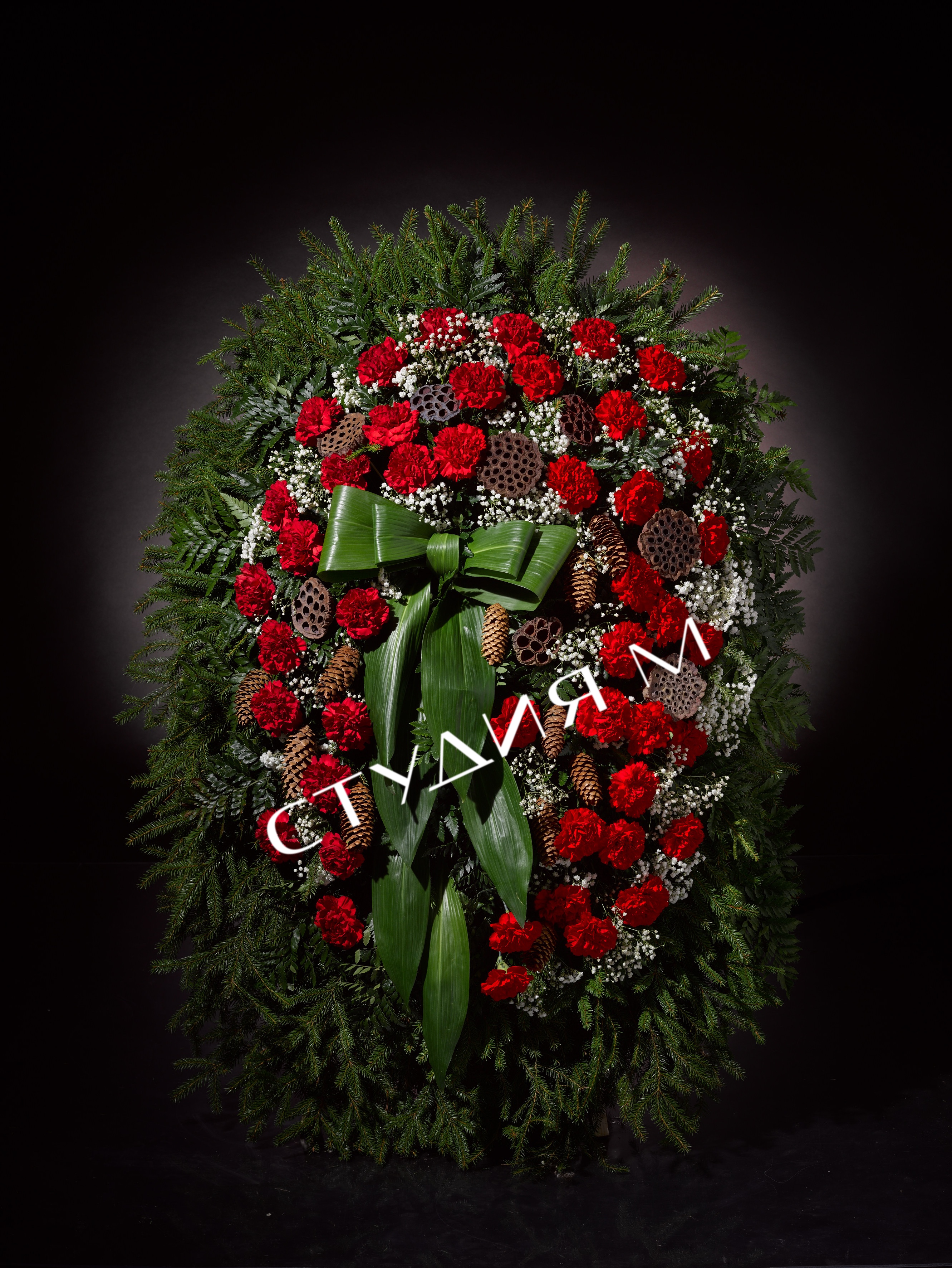 Венок ритуальный из живых цветов "эконом" №8